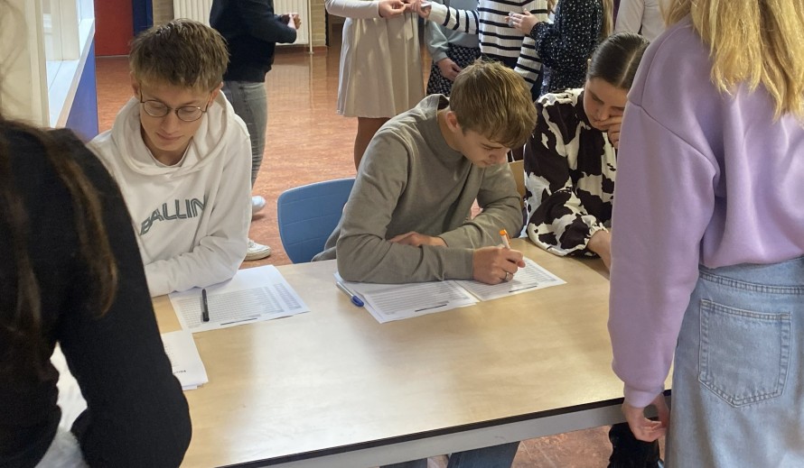 Op de Thoolse locatie van het Calvijn College heeft geschiedenisdocent Christianne van Dam-Brinkman vierdeklassers vmbo-gt onder haar hoede. Ze vindt het belangrijk om haar leerlingen op een laagdrempelige manier kennis te laten maken met de politiek. ‘Over twee jaar zijn ze stemgerechtigd. Leerlingen zeggen makkelijk dat ze net zo goed thuis kunnen blijven, omdat het niks oplevert.’